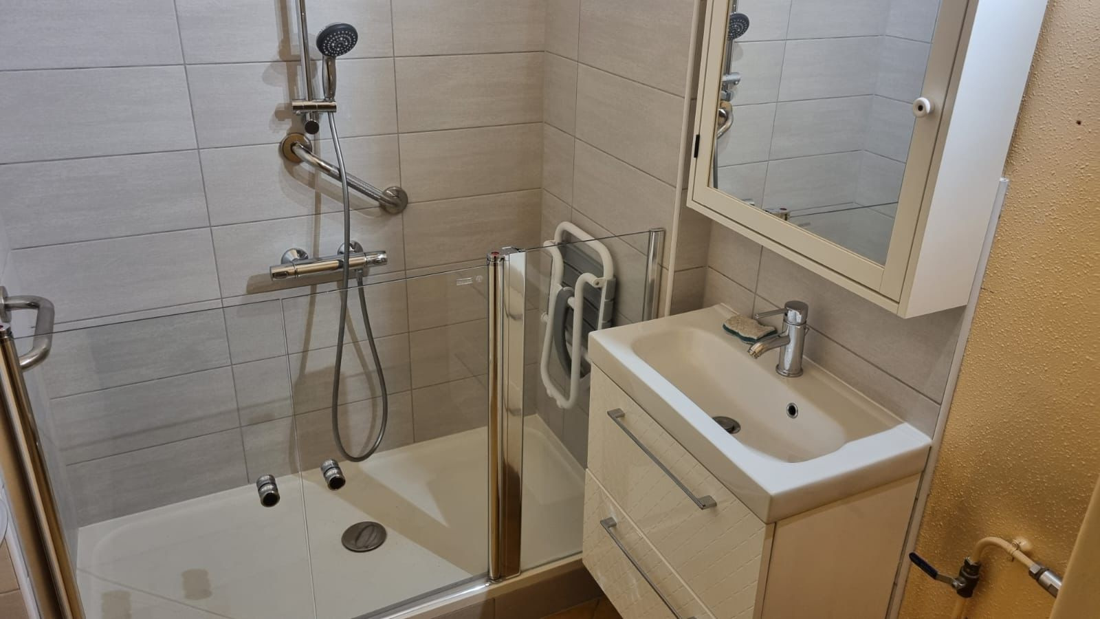 L’appartement se compose d’une entrée, d’une cuisine fonctionnelle avec un cellier attenant, idéal pour optimiser le rangement, et d’un séjour lumineux ouvrant sur un balcon de 6.54 m².